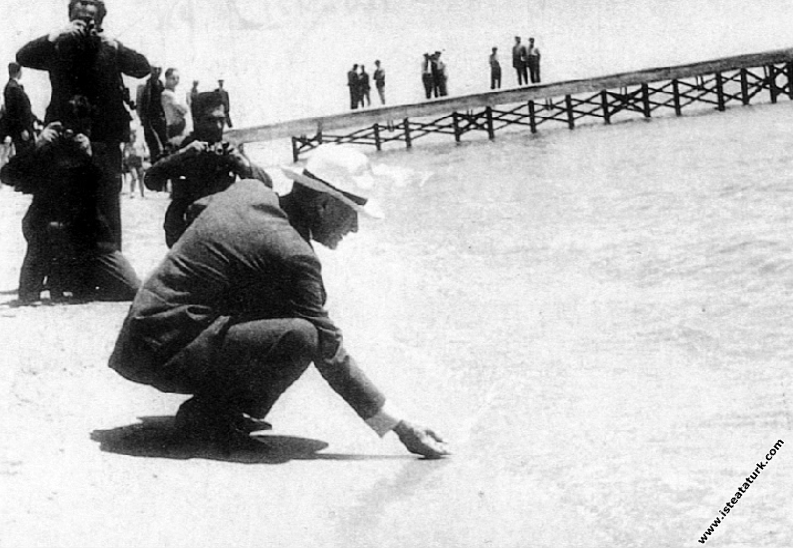 Büyük Önder bundan sonra kıyıya inerek eller ile suyu muayene ettiler ve «sular sıcak» dediler ve sonra ilâve ettiler:
